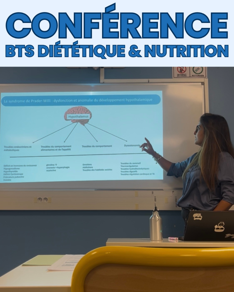 Nos étudiants de BTS Diététique et Nutrition ont eu la chance d’assister à une intervention passionnante du Dr Sanaa EDDIRY, cheffe de projet hospitalier aux Centres Maladies Rares du CHU de Toulouse.